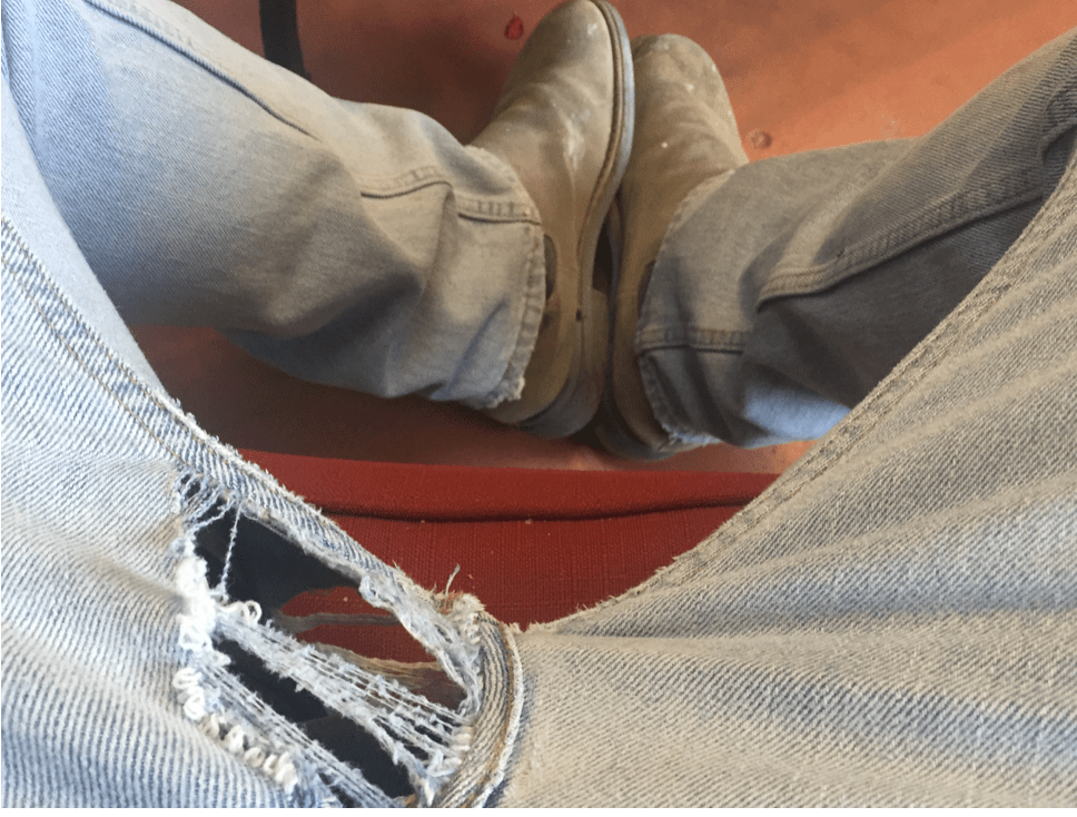 To Whom It May Concern, Unapologetically, I publicly announce my love to my wearer….Dave. We are hard-wearing and tightly weaved in this life. Pay no attention to the transcending of receding cotton threads, or the lack of blue contours that have lost their constitutional condition. So don’t abandon me now Dave, for I too have toiled with you my friend. We have been down many roads and have collected many rips, bruises, soil and stains. Our souls are made of denim, I am your faithful indigo friend.