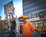 After having lunch across the street, Larry and Doug get back to business in front of Grauman’s Chinese Theatre proselytizing to tourist in Hollywood. I asked Larry, If a woman with large breasts works at Hooters, then where does a woman with one leg work IHOP? Larry refused to acknowledge my question and raised his bullhorn and bellowed out his message. No tourist asked to have their photo taken with Larry and Doug.