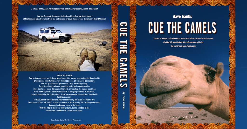 I’d clearly notice Dave’s absence for weeks or months at a time – his giggles only heard in my memories – until, unexpectedly, his distinctive howl would come from behind the camera once again. Dave’s disappearing and reappearing act had been going on ever since I took over the Tonight Show in 1992, but it wasn’t until reading ‘Cue the Camels’ that I learned Dave was freelance – booking out of my show to shoot news and documentaries in the Middle East and North Africa.