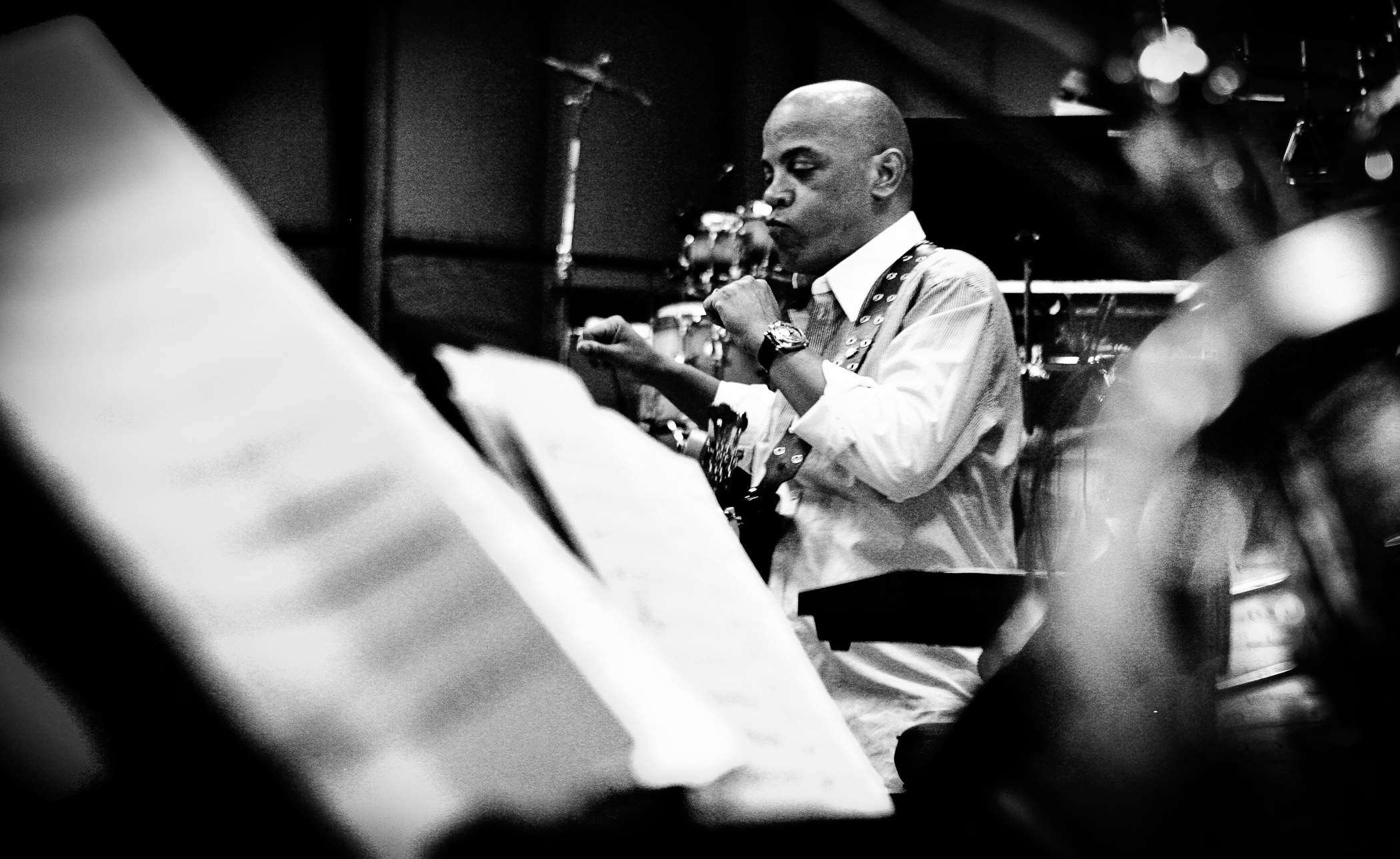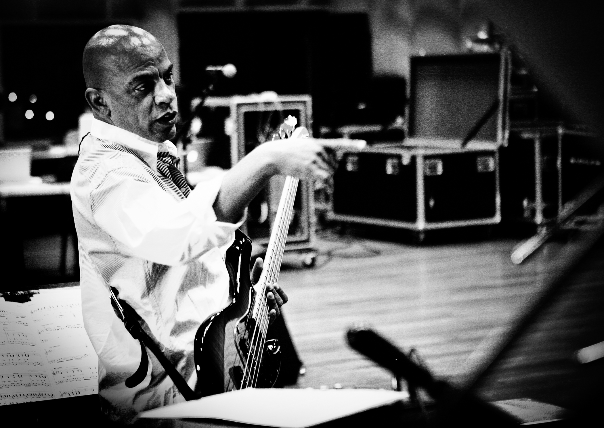 It is my favorite assignment, photographing musicians while in rehearsal or in a recording studios. It is the moment that the musicians delve deeply into the musical notes on a sheet of paper and give birth to a sound that becomes airborne with an arsenal of emotions. Like a still image, music can act as a synthetic acid which enhances flashbacks to a moment in time that has been joyful or painful and never forgotten. Music is the needle and thread that sews our humanity together and in spite of being in metal boxes on Golden State 5 you can witness the joy of Angelenos as they boogie, jive and groove to their own soundtrack, it is a collective consciousness of moving forward to the beat of their own music.