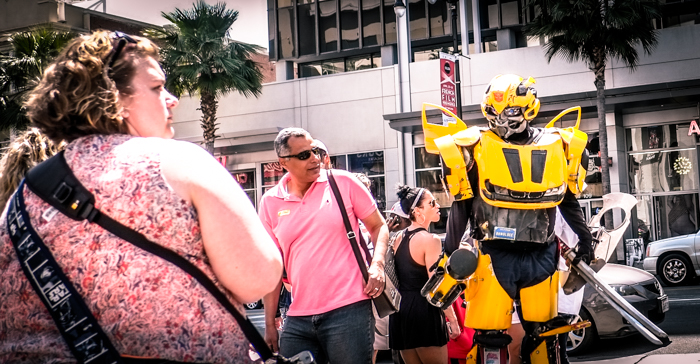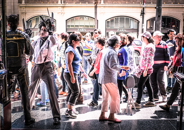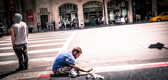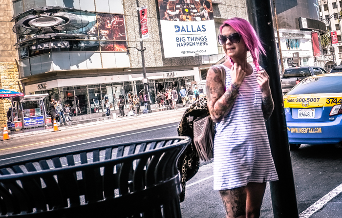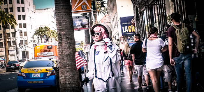 We are the little people, faceless and sad, we accumulate at a bus stop near Sunset and Sad, as you can see we wait for a bus that will never drew near. We are surrounded by the artificial glitter of the Stars, which provides the illusion of certain happiness which seem more real than where we are. We see the failed sitcom stars and the whole fragile scene as the dumpsters are filled with broken dreams.